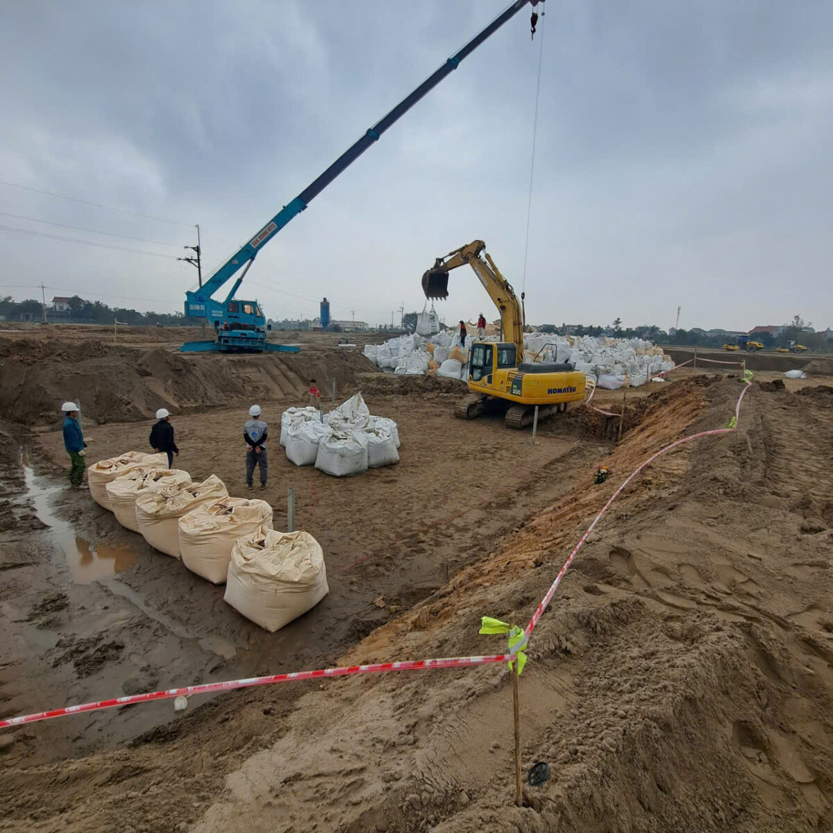 Thử tải cụm cọc xây dựng sân bay Gia Bình