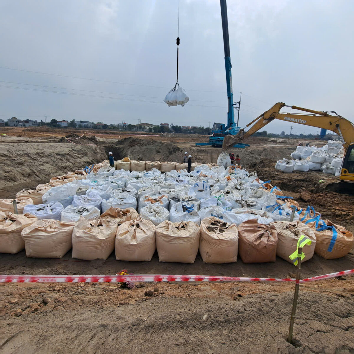 Thử tải cụm cọc xây dựng sân bay Gia Bình